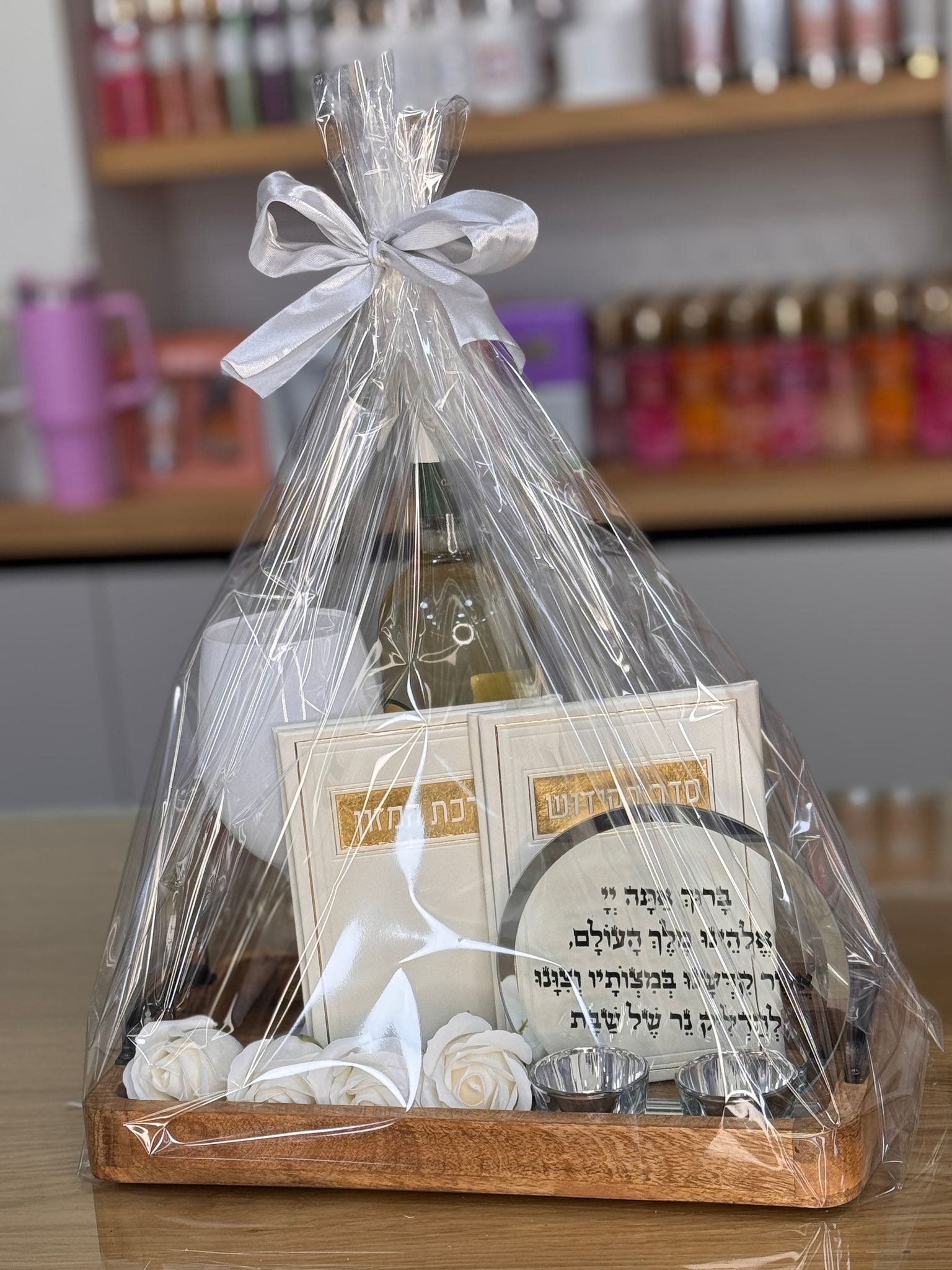 מארז מהמם של קדושה לפסח ! מכיל - ספר ברכת המזון ספר לקידוש מגש מעץ יין כוס יין ופמוטים . מה צריך יותר מזה ?